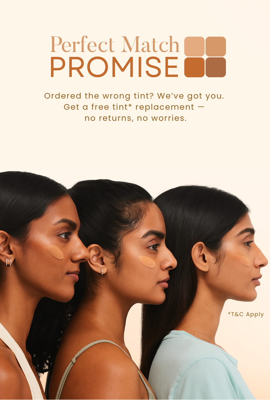 Our tints have been developed to match a range of diverse skin tones. So you need not worry too much about finding that exact match for your skin! The closest match is sure to blend well.