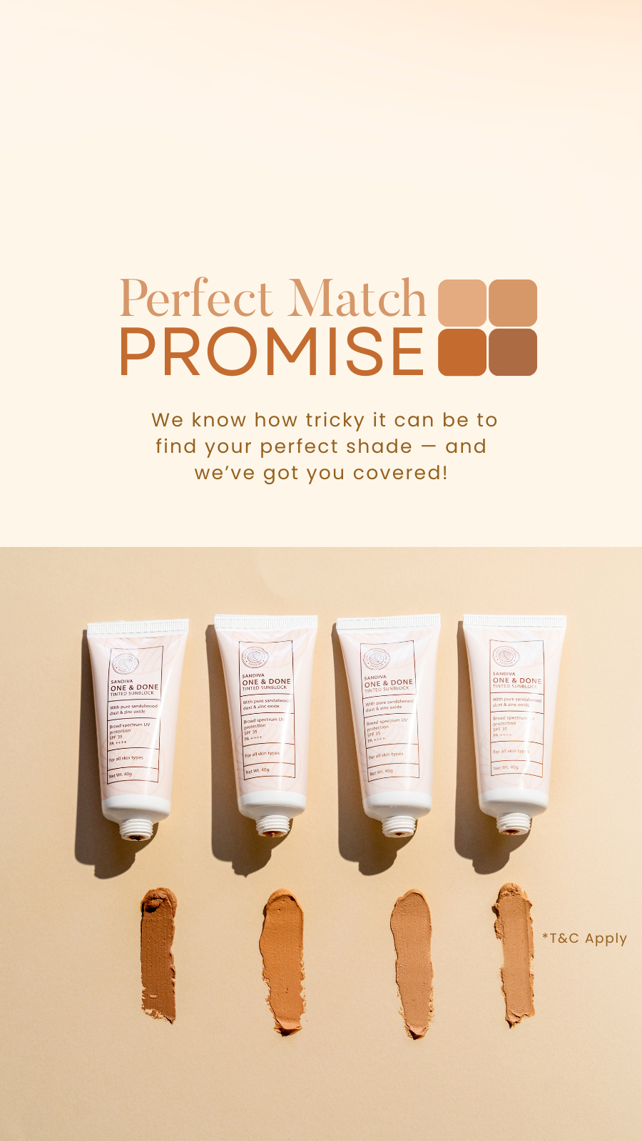 Our tints have been developed to match a range of diverse skin tones. So you need not worry too much about finding that exact match for your skin! The closest match is sure to blend well.Also remember - our products are not developed to be a concealer or foundation.