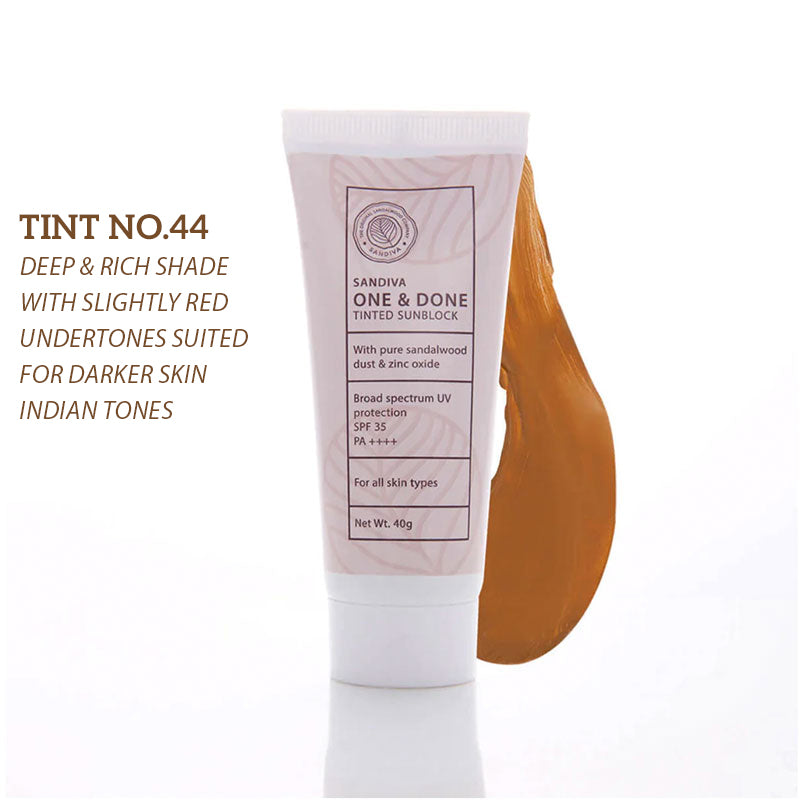 While this sounds perfect, nobody likes the white cast that most physical sunscreens leave- and that’s where the sandalwood and the choice of tints come. Our sunblock is available in 4 different shades that blend with most Indian skin tones. This tint gets rid of the white cast by giving a satin-matte finish, and leaves your face feeling smooth and radiant all through the day.