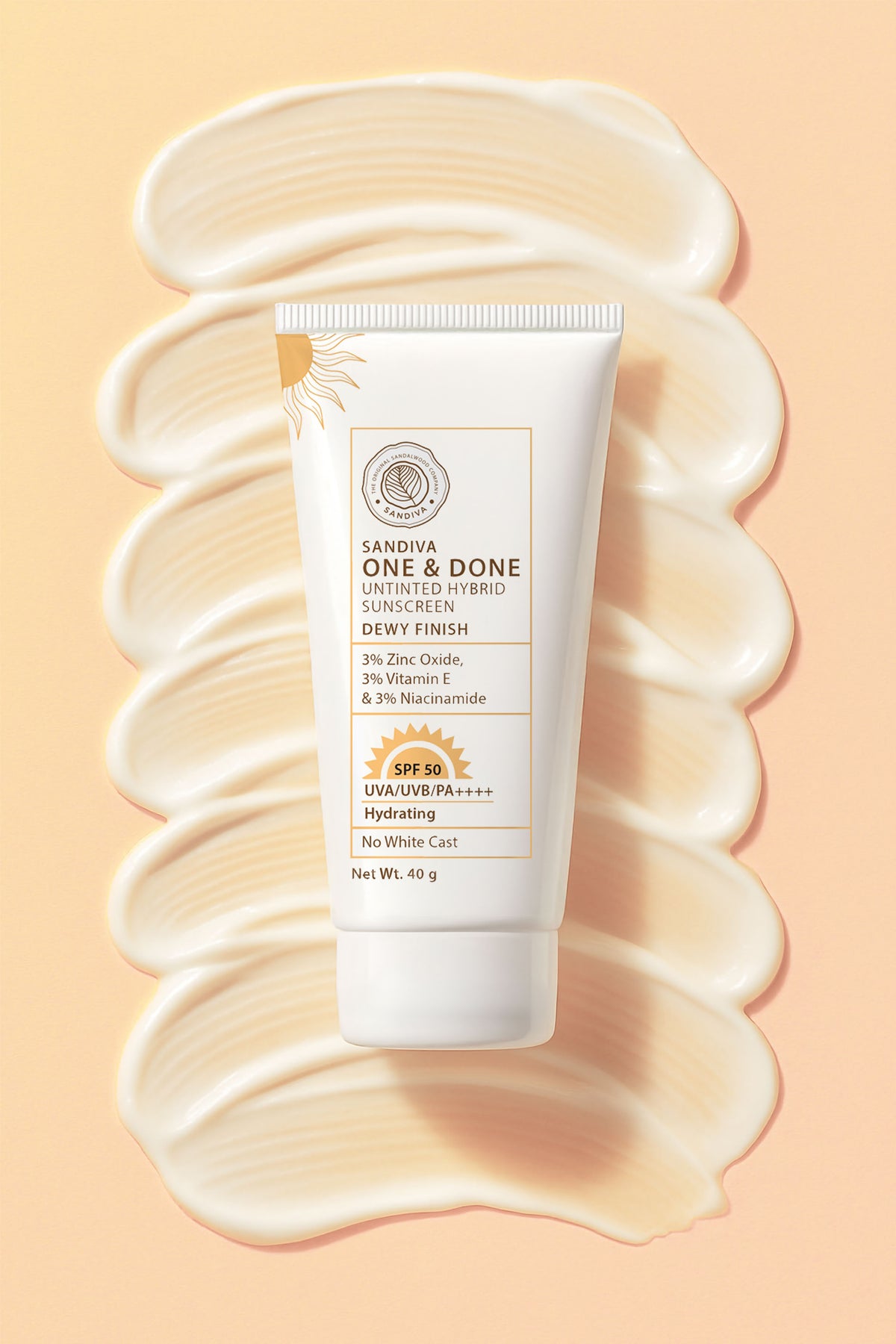 Sandivaβs Untinted Hybrid Sunscreen is a hydrating sunscreen formulated as a One & Done product that provides both sun protection and hydration, with skin-loving ingredients like Vitamin E and Niacinamide. This means our product offers all the moisture your skin needs, so you can skip the extra layer of moisturiser!